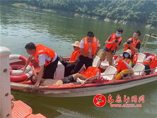 本網(wǎng)訊(實(shí)習(xí)記者 劉淵)6月30日上午,十四運(yùn)會安康市競委會安保處協(xié)同市應(yīng)急管理局、市消防救援支隊(duì)、市公安局、海事局、瀛湖管委會、安康市中心醫(yī)院、安文旅公司、漢濱區(qū)公安局等單位在瀛湖翠屏島附近公開水域組織開展馬拉松游泳賽事運(yùn)動員遇險(xiǎn)全要素應(yīng)急救援綜合演練。