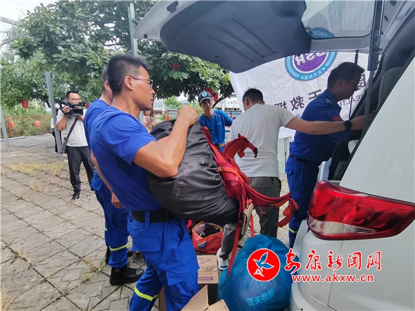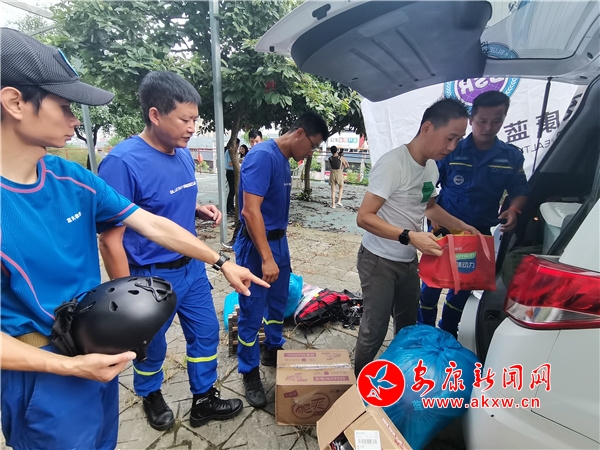 浮力馬甲、頭盔、拋繩包、50米繩、30米繩、急救包、固定板、太陽燈……準備現場,隊員們逐一認真核對所攜帶的救援裝備,不時有志愿者送來捐贈的生活用品。