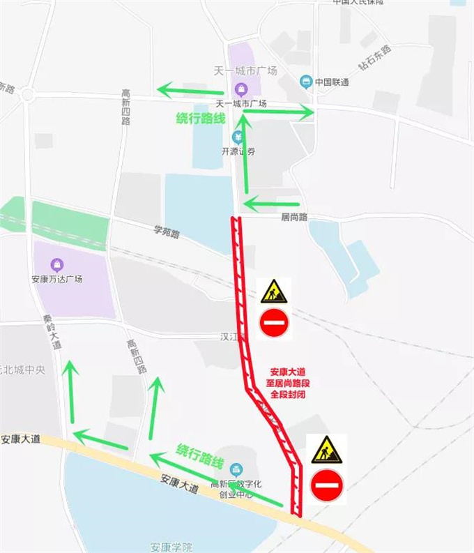 據(jù)了解,交通管制路段為花園大道(安康大道至居尚路段),全段封閉。交通管制時間為8月25日00時00分至9月1日00時00分。受交通管制影響車輛可通過安康大道、高新四路、秦嶺大道、世紀(jì)大道繞行。