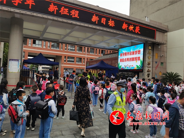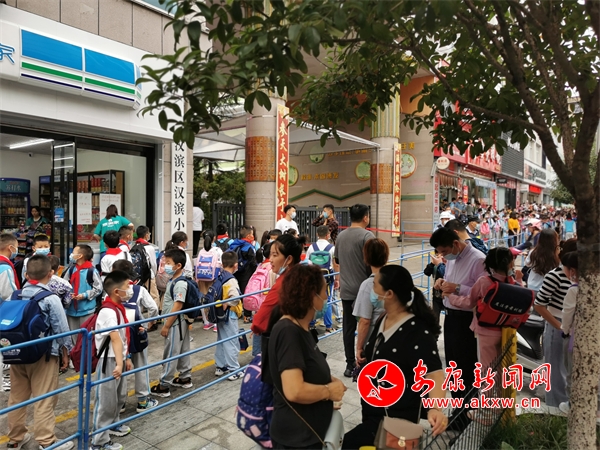 9月1日,新學期如期開學,安康中心城區(qū)的漢濱小學、安康陽光學校、安康市第一小學的門口秩序井然,小學生們戴著口罩,精神抖擻排著隊等候進入校園。公安、城管在現(xiàn)場加強疏導,學校周邊交通秩序正常,祝小小少年,健康成長,揚帆遠航。(鄭時根 攝)BDD安康新聞網(wǎng)
