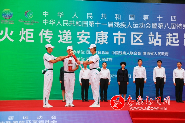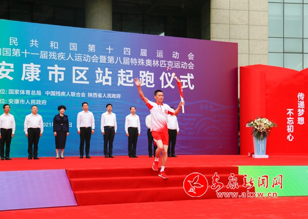 省殘疾人聯合會理事長、殘?zhí)貖W會組委會執(zhí)行副秘書長相紅霞,市委書記、十四運會和殘?zhí)貖W會安康市執(zhí)委會主任趙俊民,市委副書記、市長武文罡,原陜西省南水北調辦公室主任、十四運會和殘?zhí)貖W會場館建設部駐會副部長朱昱,省生態(tài)環(huán)境廳二級巡視員、十四運會和殘?zhí)貖W會組委會環(huán)境治理部駐會副部長王文,市委常委、宣傳部部長羅雪劍出席火炬?zhèn)鬟f起跑儀式。火炬?zhèn)鬟f起跑儀式由副市長、十四運會和殘?zhí)貖W會安康市執(zhí)委會副主任楊淼主持。