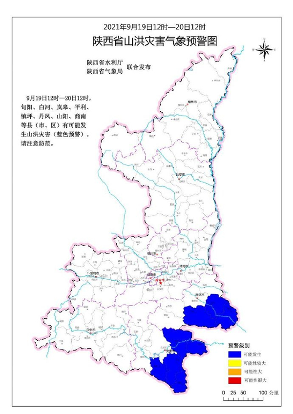 本網(wǎng)訊 陜西省水利廳與陜西省氣象局聯(lián)合發(fā)布山洪災(zāi)害氣象預(yù)警:預(yù)計(jì)2021年9月19日12時(shí)至2021年9月20日12時(shí),旬陽、白河、嵐皋、平利、鎮(zhèn)坪、丹鳳、山陽、商南等縣(市、區(qū))有可能發(fā)生山洪災(zāi)害(藍(lán)色預(yù)警)。請注意防范。Kkp安康新聞網(wǎng)