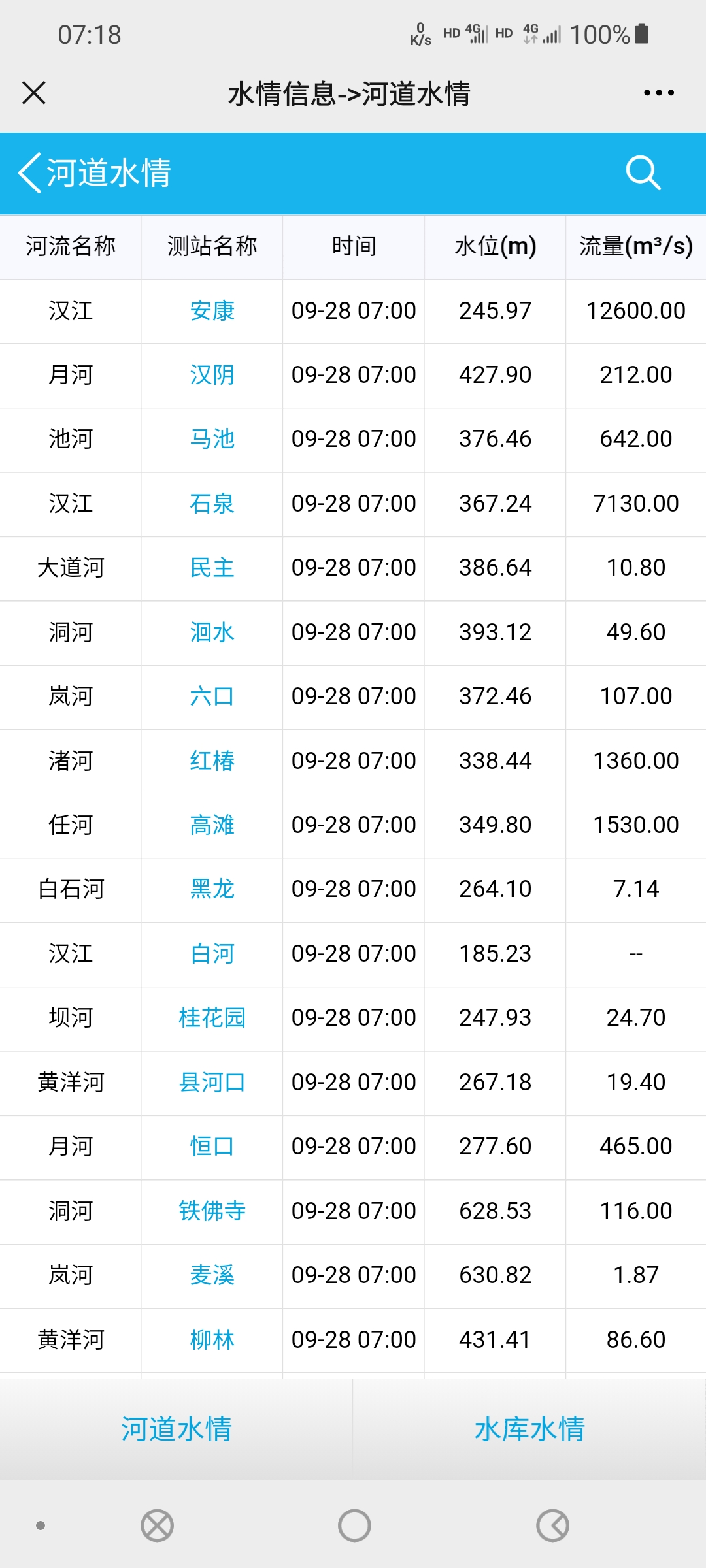 快報(bào) | 截至9月28日7時(shí) 漢江最新水位流量