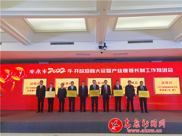 會(huì)議通報(bào)了安康市經(jīng)濟(jì)社會(huì)發(fā)展、重點(diǎn)產(chǎn)業(yè)鏈鏈長制推進(jìn)、重點(diǎn)產(chǎn)業(yè)方向、營商環(huán)境及2022年開放招商重點(diǎn)工作,表彰了2021年招商引資工作先進(jìn)單位和先進(jìn)個(gè)人。李華楓等16名同志聘為安康市開放發(fā)展高級(jí)顧問。