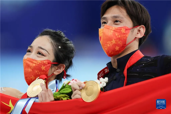 ▲2月19日晚,中國花樣滑冰選手隋文靜、韓聰獲得北京冬奧會(huì)雙人滑金牌。