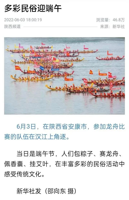 咱們安康龍舟節(jié),不光受到在外安康人熱捧,全國各地網(wǎng)友更是紛紛為本屆龍舟節(jié)打call。此外,新華通訊社、中央廣播電臺等駐外記者站及美聯(lián)社更是相繼轉發(fā)安康漢江龍舟節(jié)新聞;facebook、Twitter、You Tube等網(wǎng)絡社交平臺也紛紛傳播安康聲音。