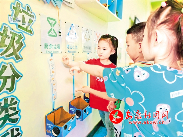 走進(jìn)漢濱區(qū)幼兒園,隨處可見以垃圾分類為主題的展板。該園老師鄭玉介紹:“全園15個(gè)班,每個(gè)班都設(shè)置有垃圾分類專題角,每學(xué)期不定期開展垃圾分類主題教育活動,每周一圍繞垃圾分類的意義、如何分類、處理辦法和注意事項(xiàng)等定期開展活動。并利用走廊設(shè)置垃圾分類專題區(qū),制作垃圾分類戶外展板,通過微信公眾號和交流群,以“小手拉大手的形式”,帶動家庭參與到垃圾分類行動中來。”