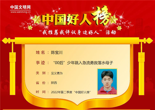 見義勇為 陳寶川:“00后”少年跳入急流勇救落水母子(安康市)