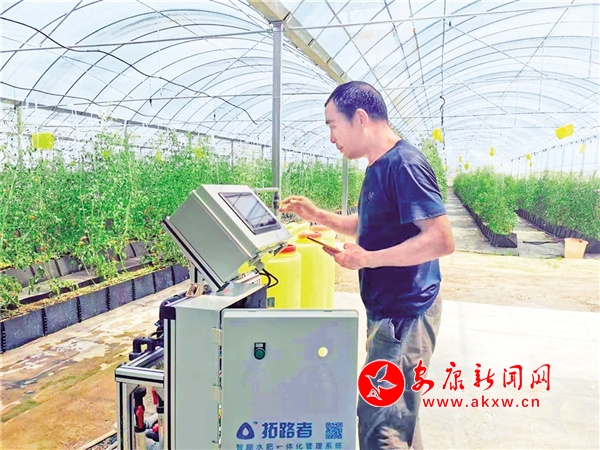 田祖山正在操作智能水肥一體化管理系統(tǒng)。