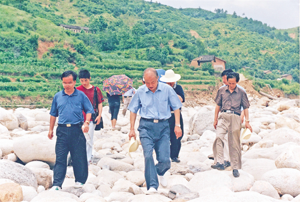 在救災(zāi)的過程中,熊邦高有時會面臨生命危險。那天從石泉救災(zāi)返回安康已是午后,行至一橋橋頭,熊邦高提出要去漢濱區(qū)瀛湖鎮(zhèn)查看災(zāi)情。當(dāng)時去瀛湖鎮(zhèn)只有江南一條經(jīng)吉河向西的路,當(dāng)他們乘坐的小車行至吉河往西幾公里的地方時,險情發(fā)生了!車前突然由山上滑落下一整塊比小車還大的石頭擋住了去路。車剛停下,車后的泥石流飛馳而下,截斷了后路。汽車的輪胎被埋在泥石流中,車不能動,人不能出。無助之下,他們只好先電話求救,但因泥石流阻隔,人車都無法向他們靠攏。他們又向市公路部門求援,待挖掘機(jī)和鏟車趕到現(xiàn)場,先清理了車后的泥石流,又用炸藥炸碎了車前的巨石,這才得以脫險。