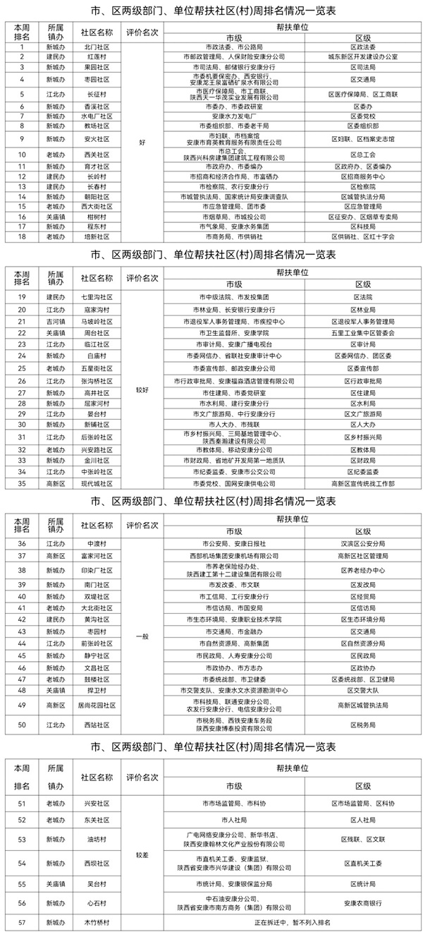 附件:市、區(qū)兩級部門、單位幫扶社區(qū)(村)周排名情況一覽表