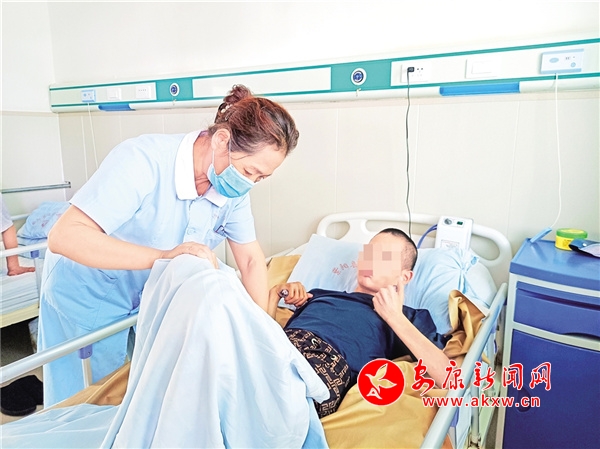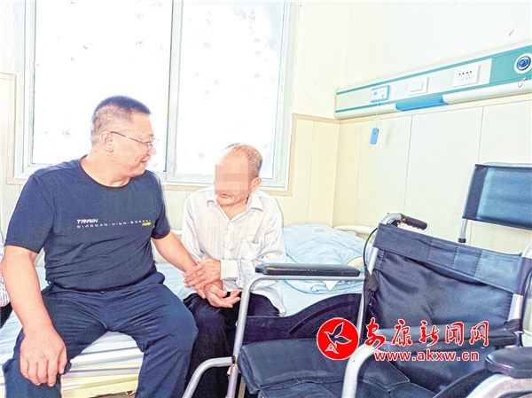 身材敦實(shí)的中年漢子魏龍江,動(dòng)作敏捷而又輕柔地?cái)D到對(duì)面去,打開老人床上那折疊成方塊的被子,又揭開床單、抽出墊褥。大家在他的展示中,看不到臟污,聞不到尿騷與臭氣。接著,他又把輪騎轉(zhuǎn)了一圈,讓我們真切地看到:老人的皮膚是健康的,衣服是干凈的,身上也沒(méi)有什么異味兒。
