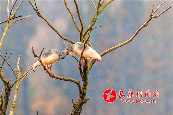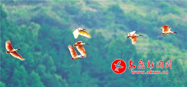 三是朱鹮已經(jīng)成為漢陰縣的“定居者”。漢陰縣生態(tài)環(huán)境優(yōu)良的一個(gè)顯著特點(diǎn)是河流、水庫(kù)周?chē)纳指采w率較高,尤其是松樹(shù)林較多,這些樹(shù)種適宜朱鹮在這上面建窩繁殖。據(jù)不完全統(tǒng)計(jì),目前漢陰縣朱鹮數(shù)量有百只以上。良好的生態(tài)環(huán)境不僅吸引了各類(lèi)鳥(niǎo)類(lèi)的到來(lái),而且還讓朱鹮成了當(dāng)?shù)亻L(zhǎng)期的“定居者”。