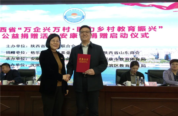 孟平代表市委、市政府向陜西省工商聯(lián)和捐贈方表示感謝,并向格樂國際公益基金管委會頒發(fā)了榮譽證書。她在講話中指出,希望各受助學(xué)校確保設(shè)備設(shè)施功能完好、后勤保障充分有序,服務(wù)教育教學(xué)、賦能人才成長,要引導(dǎo)廣大學(xué)生大力發(fā)揚滴水之恩、涌泉以報的反哺精神,崇文尚學(xué)、尊師重教的優(yōu)良傳統(tǒng),以實干實績書寫教育振興答卷。各級教育部門要以推進教育強市為目標(biāo),用實際行動助推教育振興;各級“萬企興萬村”行動領(lǐng)導(dǎo)小組成員單位要廣泛動員社會各界協(xié)同作戰(zhàn)、傾力支持,積極搭建教育捐贈平臺,引導(dǎo)大家主動參與捐贈行動。