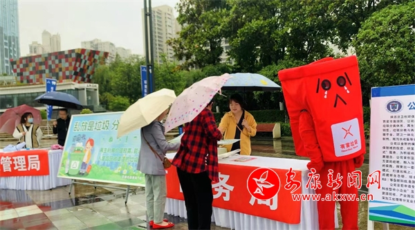 活動(dòng)當(dāng)日陰雨綿綿,北辰公園人頭攢動(dòng)。在一排排豐富多彩的宣傳展板和生活垃圾分類成果展區(qū)前,不少市民駐足觀看和詢問(wèn)有關(guān)情況,工作人員耐心解答并熱情洋溢地宣傳普及生活垃圾分類知識(shí);顒(dòng)現(xiàn)場(chǎng)還設(shè)置有妙趣橫生的環(huán)保游戲,身著環(huán)保標(biāo)識(shí)的“人形玩偶”頻頻與大家互動(dòng),在輕松歡樂(lè)的氛圍中傳遞環(huán)保理念。