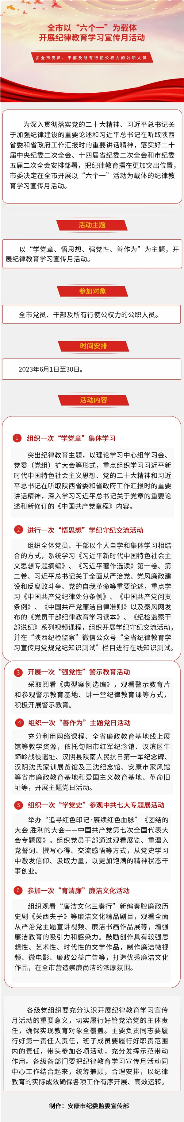 全市以“六個一”為載體開展紀律教育學習宣傳月活動