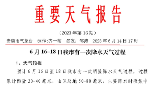安康市氣象災害應急指揮部辦公室發(fā)布