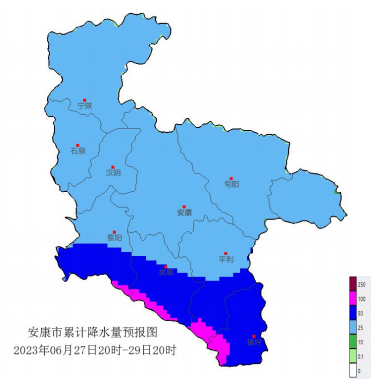 6月25日17時,安康市氣象臺發(fā)布《重要天氣報告》,6月27日夜間至29日白天,我市有一次較強降雨天氣過程。