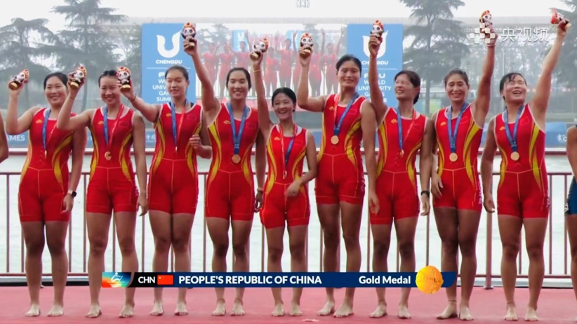8月6日成都大運(yùn)會(huì)賽艇項(xiàng)目中,安康籍賽艇運(yùn)動(dòng)員徐星葉、鞠汶君分別獲得女子4人單槳和女子8人單槳有舵手金牌。