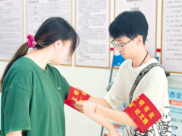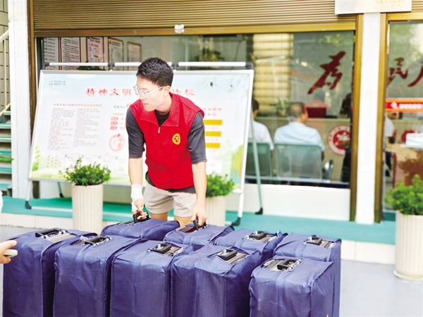 安火路社區(qū)黨委書記夏成紅告訴記者,社區(qū)成立于2001年,由原來金川居委會改制而成,人口密度大,老年人占比多。目前只有十幾名社區(qū)工作人員,工作任務繁重。轄區(qū)返鄉(xiāng)大學生在假期主動來到社區(qū)報到,要求參與志愿服務活動,當交通文明勸導員、“文明有我 ‘痰’吐文雅”糾治員、社區(qū)“鄰里之家”值班員。“有了這些新生力量的參與,不僅為社區(qū)干部減輕了工作負擔,也在轄區(qū)傳遞了正能量,讓志愿精神更好地傳承下去。”夏成紅說。