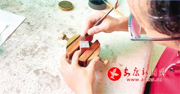 說起機(jī)器雕刻的市場優(yōu)勢,郭榮高的神色中閃過一絲落寞,但又轉(zhuǎn)瞬即逝。他說,作為這個行業(yè)的傳承人,應(yīng)該始終如一追求書法的構(gòu)思和手工雕刻的質(zhì)感,讓文化張揚個人風(fēng)格,讓作品不乏人文氣質(zhì)。在他看來,手工碑刻有韻律感,線條古樸自然,而機(jī)器篆刻是完全復(fù)制,只是一些均勻的線條而已。很多情感上的東西是機(jī)器無法替代的。