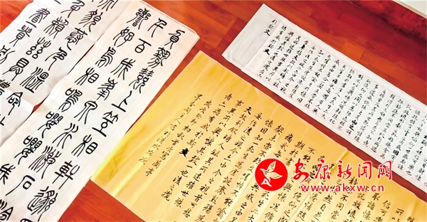識字、書寫成了制約郭家生意的最大瓶頸,15歲的郭榮高便第一次走進(jìn)新華書店,買了人生第一本字帖——顏真卿的《多寶塔》。雖然每天用報紙、木板沾水練字,郭榮高覺得自己進(jìn)步并不大,筆法、結(jié)構(gòu)、快慢、輕重、大小、呼應(yīng)、承讓、向背、提按、頓挫等自己都掌握得不好。于是他又想盡辦法拜師,先后師從韓正楷、劉暘光、馬昌琪等安康本土?xí)摇?span style="display:none">Add安康新聞網(wǎng)