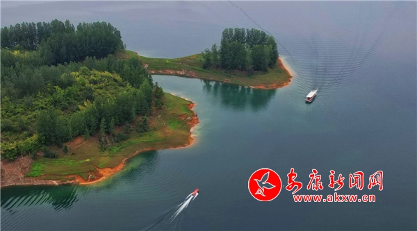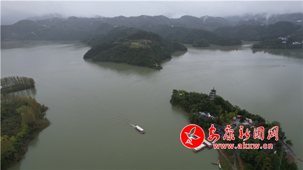 登上游船,憑窗站艙或斜倚欄桿,迎著細細春雨,向翠屏島駛?cè)。湖面水波不興,船像在玻璃上滑行。粼粼水波,像安康絲綢上的細紋,光滑嫩綠。站在船頭,如駛進大海,喜不自勝。雨,像斷了線的珍珠,拋撒在溫柔恬雅的湖面上,點點閃閃,晶瑩明亮。湖上的點水雀不經(jīng)意間從船舷擦水而過,驀然回首,不覺驚異和高興。綿鱗遽然躍水的瞬間,叫人看到飛花點翠的一閃,游子橫波一笑。舷側(cè)的浪花低吟慢唱,猶帶一些委婉悠揚,頗似顫響在絲竹與板胡上的安康漢調(diào)二黃。船員介紹了翠屏島是因島上的草木蒼翠茂盛,五彩繽紛,從空中俯瞰活像孔雀開屏,故取此名。