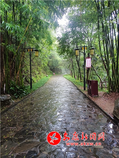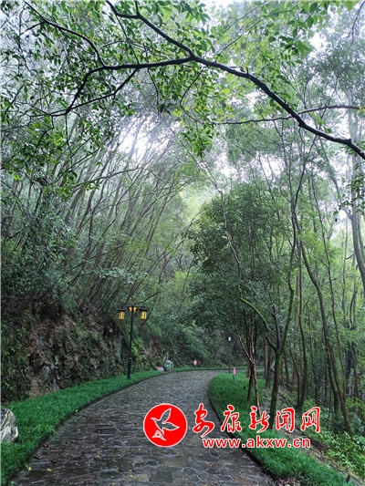 福道被雨水清洗得纖塵不染,旁邊,筆直粗壯的松柏、楓柳從谷底拔地而起,直插云霄。七里香、救命糧的藤蔓盤來繞去,織得密不透風,像天然的綠色屏障。青綠的葉子經(jīng)過雨水的沖洗,像一枚枚翡翠,綠得耀眼。那些晶亮亮的雨珠在葉子上肆意地滾動著,有的調皮地掛在葉尖上,風輕輕一吹,“啪”地掉落下來,摔碎了一段疼痛的記憶。因為太早,又是雨天,路上幾乎沒有行人,一向早起的鳥兒也趁機偷懶,躲在巢里睡大覺,少了它們曼妙的歌聲。天地間,只有細雨與林木親昵時發(fā)出的窸窸窣窣的各種細碎聲響。