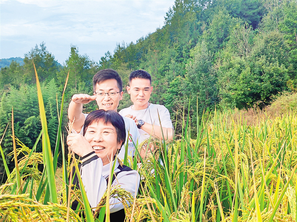 這是我省首例大面積試種成功的“巨型稻”,經(jīng)測(cè)量,平均株高1.6米,部分株高達(dá)1.8米,穗長(zhǎng)約28厘米,是普通水稻的兩倍。“‘巨型稻’一個(gè)穗子有315粒谷子,普通水稻一個(gè)穗子只有171粒。普通水稻在我們這溝田里種植,一畝地產(chǎn)量不到400公斤,但‘巨型稻’每畝產(chǎn)量可達(dá)600公斤以上。今年試種的90畝地,總產(chǎn)量達(dá)到5萬(wàn)公斤。”盤龍村黨支部書(shū)記顏顯琴難掩內(nèi)心的激動(dòng)。