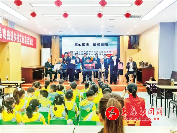 白河縣獅子山社區(qū)聯(lián)合城關(guān)鎮(zhèn)中心幼兒園舉辦“童心敬老情暖重陽(yáng)”主題活動(dòng)。黃秀琴 攝