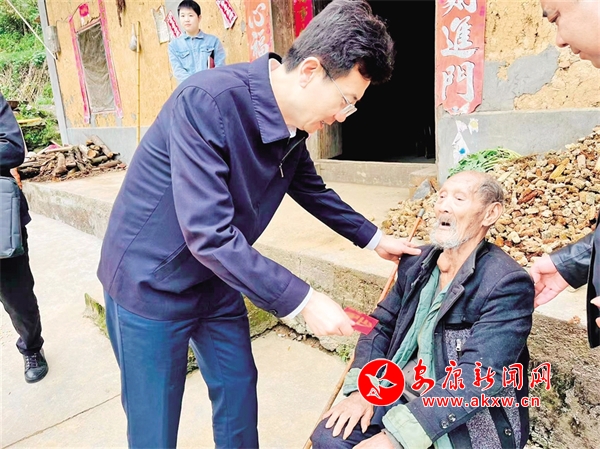 市民政局前往漢濱區(qū)雙龍鎮(zhèn)21組慰問百歲老人。劉益波 攝