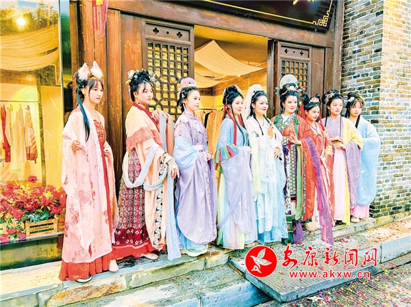 雙河口古鎮(zhèn)漢服巡游活動。 漢陰縣 王建霞 攝