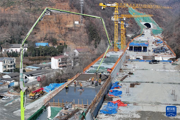 △ 1月26日拍攝的中鐵七局集團西康高鐵3標段項目施工現(xiàn)場(無人機照片)。新華社記者 邵瑞 攝