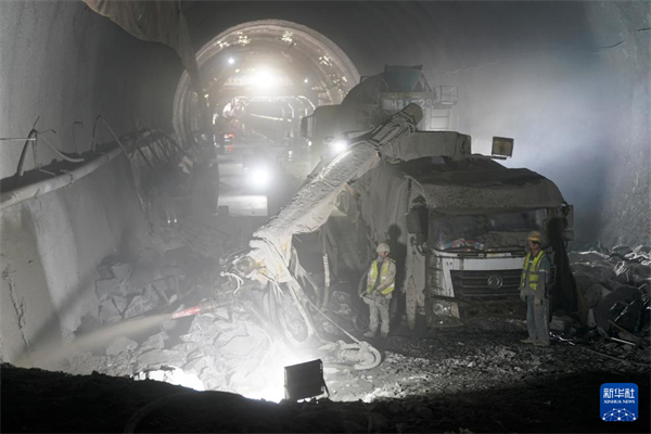 △ 1月26日,在長達13.3公里的西康高鐵秦嶺九天山隧道內(nèi),中鐵七局集團的工人在開挖面作業(yè)。新華社記者 邵瑞 攝