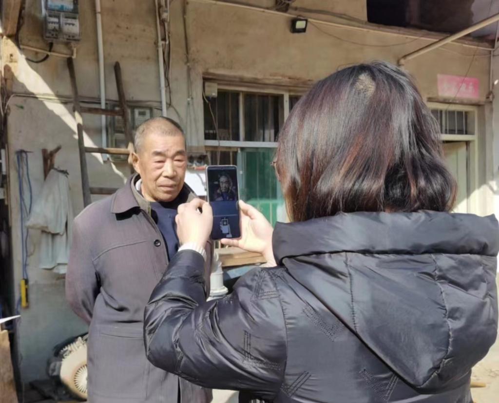 五愛(ài)村干部上門為高齡老人做生存認(rèn)證。新華社記者 李亞楠攝