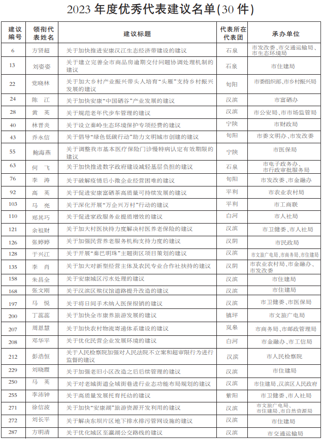 希望受表揚(yáng)的代表珍惜榮譽(yù),再接再厲。全體市人大代表要以受表揚(yáng)的代表為榜樣,深入學(xué)習(xí)貫徹黨的二十大精神,全面落實(shí)中央和省委、市委人大工作會(huì)議要求,忠誠為黨分憂,忠實(shí)為民履職,密切聯(lián)系群眾,深入調(diào)查研究,廣泛聽民聲、匯民意、聚民智,進(jìn)一步提出高質(zhì)量的建議、批評(píng)和意見,為加快建設(shè)漢江生態(tài)經(jīng)濟(jì)帶重要節(jié)點(diǎn)城市、在中國式現(xiàn)代化道路上聚力建設(shè)幸福安康作出更大貢獻(xiàn)!