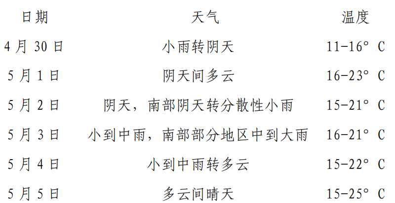 溫馨提示:5月1—2日我市以陰天到多云天氣為主,溫度適宜,空氣質(zhì)量較好,適合外出游玩;3—4日有明顯降水天氣降水過程,需防范降水導(dǎo)致的道路濕滑、低能見度等對道路交通的不利影響。公眾可及時關(guān)注最新預(yù)報預(yù)警信息,合理安排出行時間。