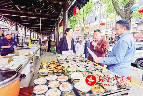 漢濱區(qū)老城街道“五一”小長(zhǎng)假期間在東關(guān)開展民俗美食體驗(yàn)活動(dòng),吸引不少游客與市民駐足品嘗。陳德模 攝