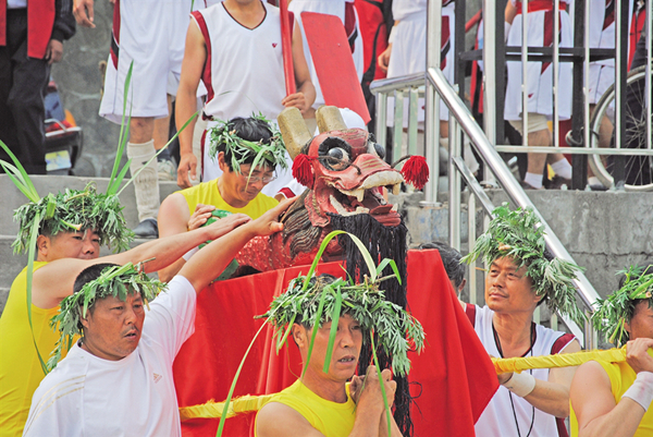 2010年6月13日,第十屆安康龍舟節(jié)開幕前一天,所有參賽船隊(duì)在西關(guān)土地廟迎接老黑龍至……