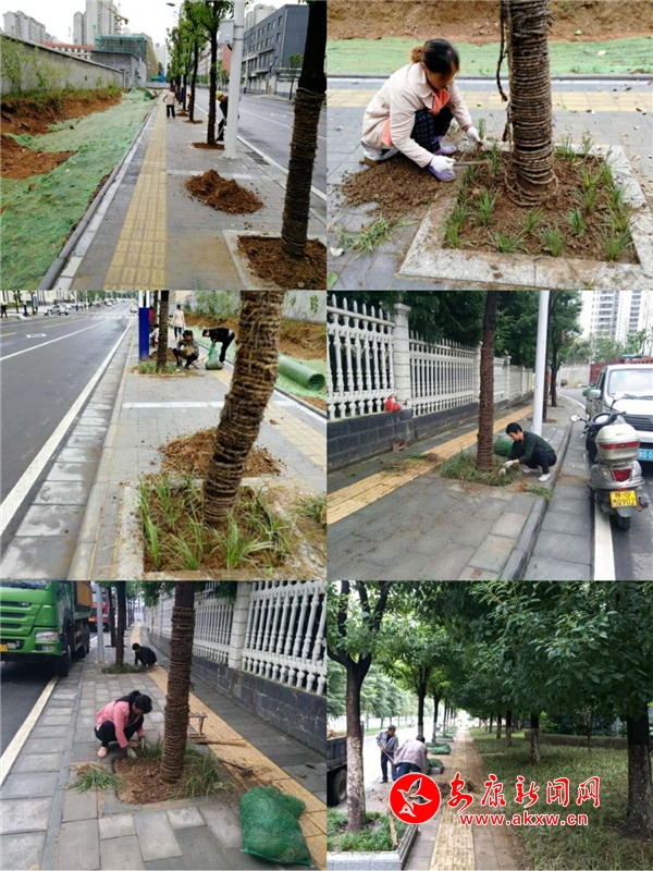 轄區(qū)行道樹樹池補(bǔ)植麥冬草……