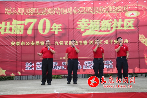 此次活動(dòng)由安康市公安局、安康日報(bào)社、漢濱區(qū)江北辦事處主辦,市公安局機(jī)關(guān)第七、第九黨支部、江北文化站、中渡村承辦,旨在充分發(fā)揮機(jī)關(guān)黨員先鋒模范作用,縱深推進(jìn)掃黑除惡專項(xiàng)斗爭和“五城聯(lián)創(chuàng)”工作,把“不忘初心、牢記使命”主題教育融入到“送書籍、送文藝、送平安”活動(dòng)中,進(jìn)一步樹牢以人民為中心的發(fā)展思想,增強(qiáng)黨員民警輔警開展主題教育的思想自覺。