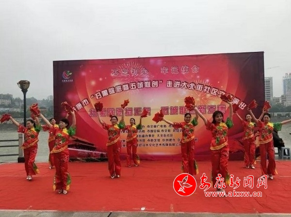 本網(wǎng)訊(通訊員 林超)10月19日,“不忘初心、牢記使命——掃黑除惡暨五城聯(lián)創(chuàng)”文藝演出走進(jìn)老城街辦大北街社區(qū),200余名觀眾在水西門廣場現(xiàn)場觀看了演出。
