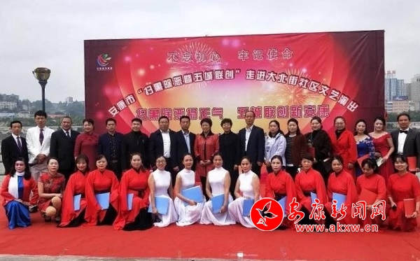 整臺演出采用舞蹈、獨(dú)唱、小品、朗誦、快板等多種形式,相聲《夸安康》、二人誦《文明之花遍地開》、四人誦《掃黑除惡我們在行動》、合誦《聚力五城聯(lián) 建設(shè)美好城市》等節(jié)目將日常工作搬上舞臺,寓教于樂!演出期間,社區(qū)干部對參會的居民發(fā)放掃黑除惡、新民風(fēng)等宣傳彩頁。