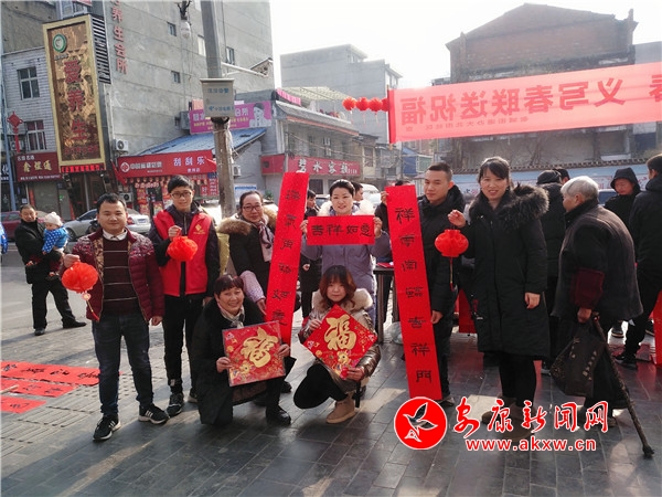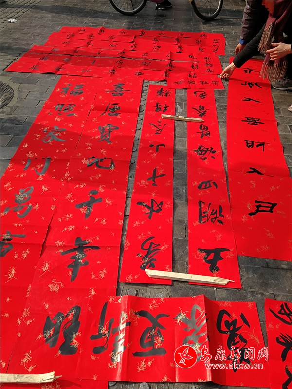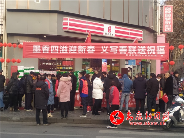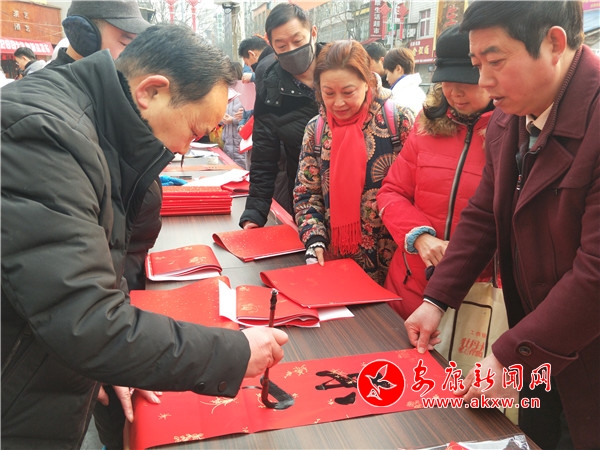 本網(wǎng)訊(通訊員 林超)為弘揚民族文化、豐富居民群眾文化生活,營造歡樂文明、喜慶祥和的節(jié)日氛圍,1月17日大北街社區(qū)黨支部邀請書法愛好者在大北街開展“萬副春聯(lián)進社區(qū)”義寫春聯(lián)活動。社區(qū)包聯(lián)領(lǐng)導(dǎo)、轄區(qū)包聯(lián)單位、文廣站及居民200余人參加此次文化活動。HZN安康新聞網(wǎng)