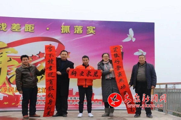 在晏臺村活動現(xiàn)場,幾張桌子一字排開,上面整齊擺放著筆、墨、紙、硯,來自區(qū)內(nèi)的書法愛好者們“老”“少”合作,神情專注,揮毫自如,橫撇豎捺間,濃濃的年味躍然紙上。“正打算買春聯(lián),這不免費春聯(lián)就在家門口,實在太好了,我要把它貼在大門口!”一位村民拿著剛“出爐”的春聯(lián),喜上眉梢。義寫期間,李家嘴村貧困戶李輝生的兒子李強(qiáng),還請書法大師們書寫了自己創(chuàng)作的春聯(lián)——不讀書縱有銀錢身何貴,貧能好學(xué)雖無功名志氣高 。“人窮志不窮,我要用這個來鼓勵我們好好干事,好好為自己的小家打拼。”chW安康新聞網(wǎng)