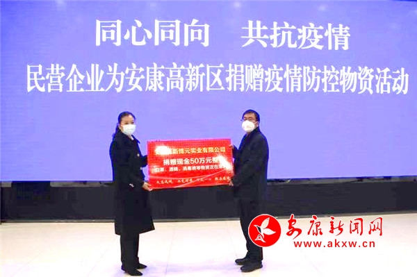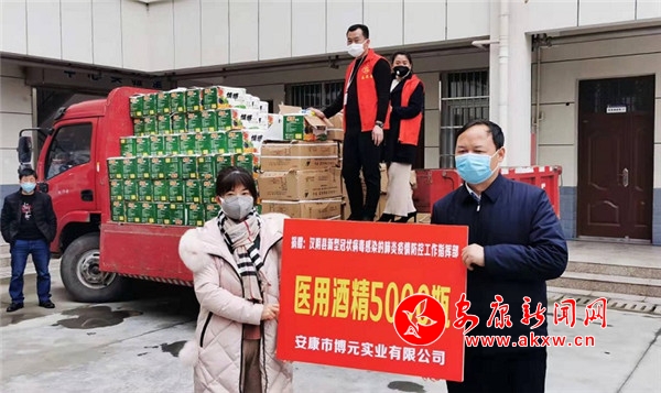 2月1日,安康市博元實(shí)業(yè)有限公司為高新區(qū)慈善協(xié)會捐款50萬元,并捐贈價值41000元的酒精2000瓶/500毫升,用于支持高新區(qū)各社區(qū)和51個村的抗疫工作。同日,向漢陰縣慈善協(xié)會捐款20萬元,捐贈價值118900元的酒精(200桶/2升,5000瓶/500毫升),由漢陰縣疫情防控工作指揮部統(tǒng)籌安排用于漢陰縣疫情防控工作。