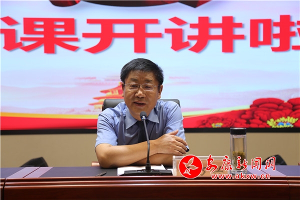 最后,結(jié)合市委組織部安排部署的“黨課開講啦”活動,市院黨組書記、檢察長王萬興以“品味信仰味道、爭做合格黨員”為主題,從堅定共產(chǎn)主義信仰、堅定高舉習(xí)近平新時代中國特色社會主義思想偉大旗幟、堅定“四個鐵一般”的干部隊伍建設(shè)要求等三個方面闡述了什么是共產(chǎn)黨員信仰,如何品味共產(chǎn)黨人的“五味”信仰,如何堅定中國特色社會主義信念,教育檢察機(jī)關(guān)的共產(chǎn)黨員必須深入學(xué)習(xí)貫徹習(xí)近平新時代中國特色社會主義思想,錘煉忠誠干凈擔(dān)當(dāng)?shù)恼纹犯,全心全意為人民服?wù),做好、做優(yōu)、做實我們的本職工作,努力爭做合格黨員,隨時準(zhǔn)備為黨奉獻(xiàn)一切,給全體與會黨員干警上了一堂生動的黨課。