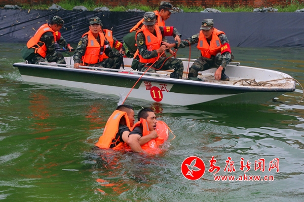 “XX中隊(duì)迅速堵截決口,XX中隊(duì)利用沖鋒舟搶救受災(zāi)群眾……”演練現(xiàn)場,對講機(jī)內(nèi)傳來一道道命令,各分隊(duì)迅速按任務(wù)分工投入緊張的救援中。據(jù)了解,此次演練以河水位暴漲、群眾受困為背景,突出對部隊(duì)快速集結(jié)、作戰(zhàn)研究、組織開進(jìn)、現(xiàn)場指揮、展開救援等環(huán)節(jié)進(jìn)行檢驗(yàn),其中設(shè)置了水上搜索救援、溺水急救、構(gòu)筑堤壩、封堵決口等險情。