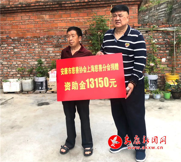本網(wǎng)訊(通訊員 張蕾)5月12日,安康市慈善協(xié)會上海慈善分會會長、上海曼登實業(yè)有限公司董事長于登玉,上海慈善分會副會長、上海浦東新區(qū)周浦醫(yī)院總經(jīng)理周康瑞來到安康,為漢濱區(qū)江北辦長征村二組的周啟均老人送來慰問金13150元。