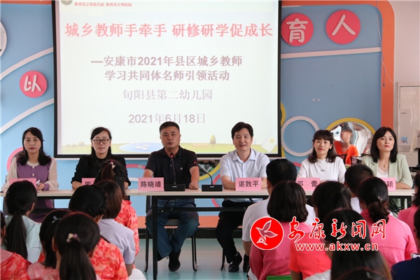 本網(wǎng)訊(通訊員 王國(guó)穎)為慶祝建黨100周年,貫徹黨史學(xué)習(xí)教育“學(xué)黨史悟思想辦實(shí)事開(kāi)新局”的要求,加強(qiáng)城鄉(xiāng)教師之間的交流與溝通,促進(jìn)城鄉(xiāng)教育均衡發(fā)展。6月17、18日,市幼兒園黨支部在市教體局的指導(dǎo)下,帶領(lǐng)“城鄉(xiāng)教師學(xué)習(xí)共同體名師引領(lǐng)”培訓(xùn)團(tuán)隊(duì),到旬陽(yáng)縣第二幼兒園開(kāi)展以“城鄉(xiāng)教師手牽手 研修研學(xué)促成長(zhǎng)”為主題的名師引領(lǐng)送教活動(dòng)。市教體局教師工作科科長(zhǎng)、旬陽(yáng)縣師訓(xùn)教研中心領(lǐng)導(dǎo)蒞臨活動(dòng)現(xiàn)場(chǎng)指導(dǎo)培訓(xùn),旬陽(yáng)縣22所鄉(xiāng)村幼兒園165名幼兒教師參加培訓(xùn)。